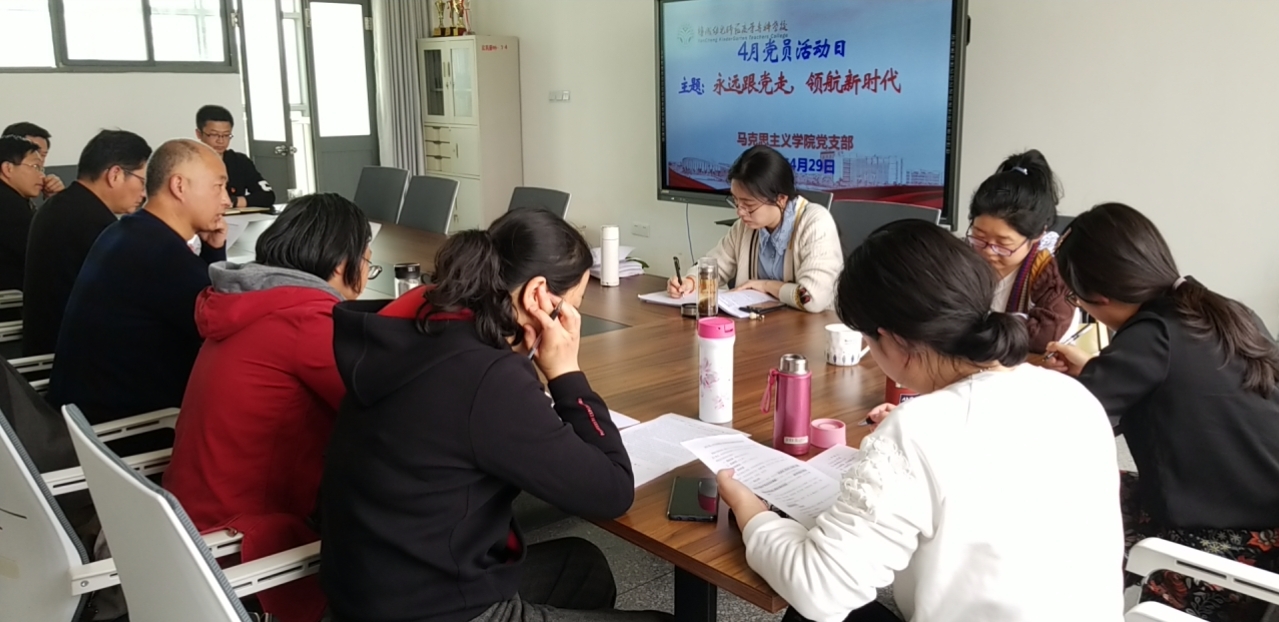 4月29日下午,马克思主义学院党支部在北校区科技楼马克思主义学院会议室开展了题为“永远跟党走 领航新时代”的党员活动日活动。马院党支部副书记周克明同志主持,全体党员参加活动。